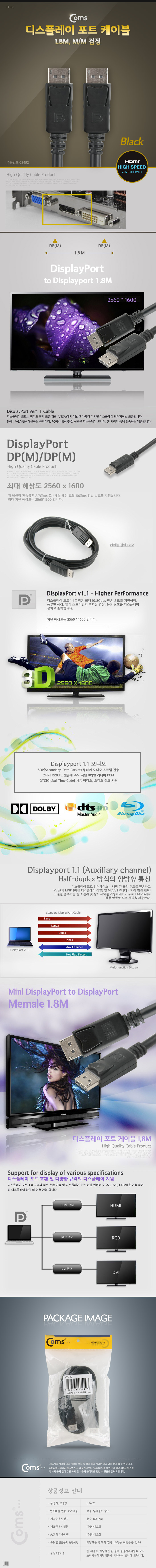 디스플레이 포트 케이블 1.8M, DP(M/F)