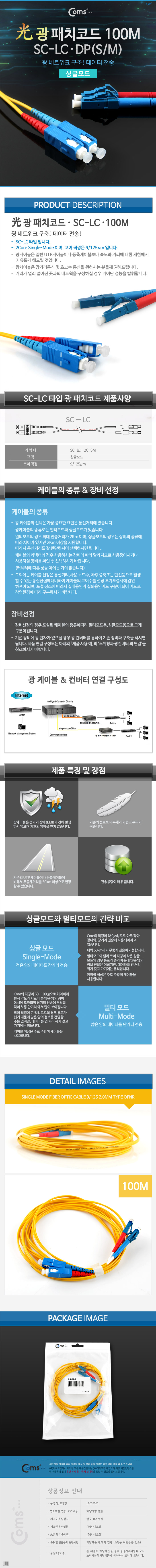 광패치코드 (S/M SC-LC DP) 100M L0016531