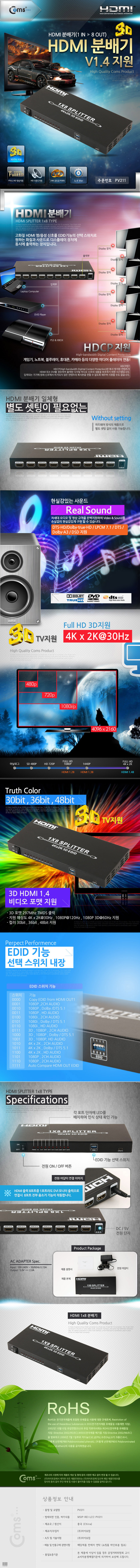 HDMI 분배기(1:8) v1.4지원 (3D / 4K x 2K ) PV211