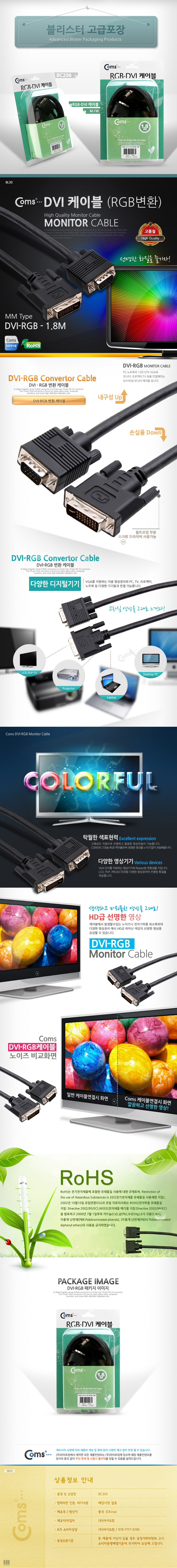 DVI 케이블(RGB변환) 2M, 고급포장/VGA, D-SUB BC206