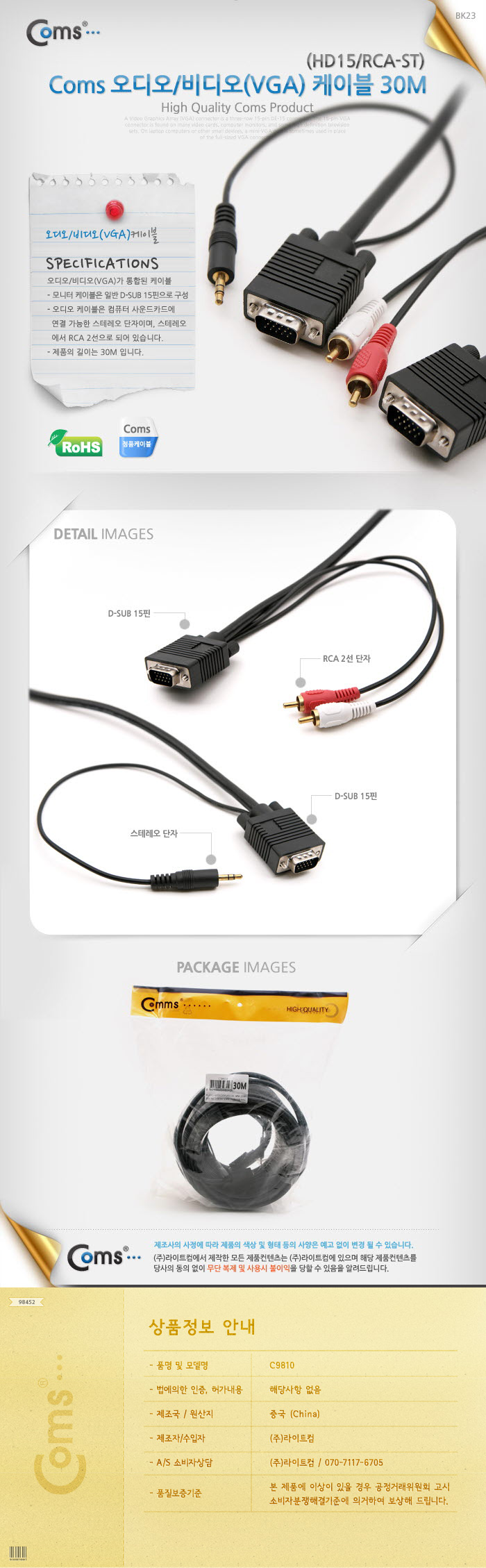모니터 RGB(VGA, D-SUB) 오디오 통합 케이블(RGB+스테레오/2RCA) 30M
