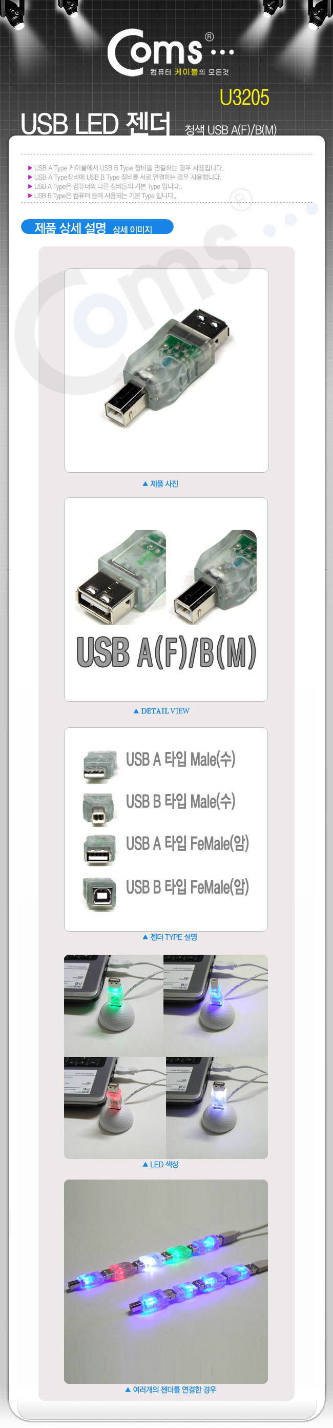 USB LED 젠더(청색)-USB 2.0 Type A(F)/B(M) U3205