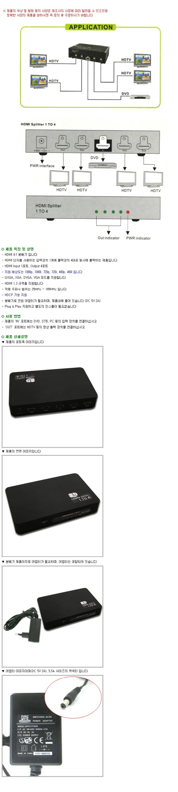 HDMI 분배기 - 4:1 제품/ 영상 동시 출력/ HDMI 1.3 규격 지원 VE296