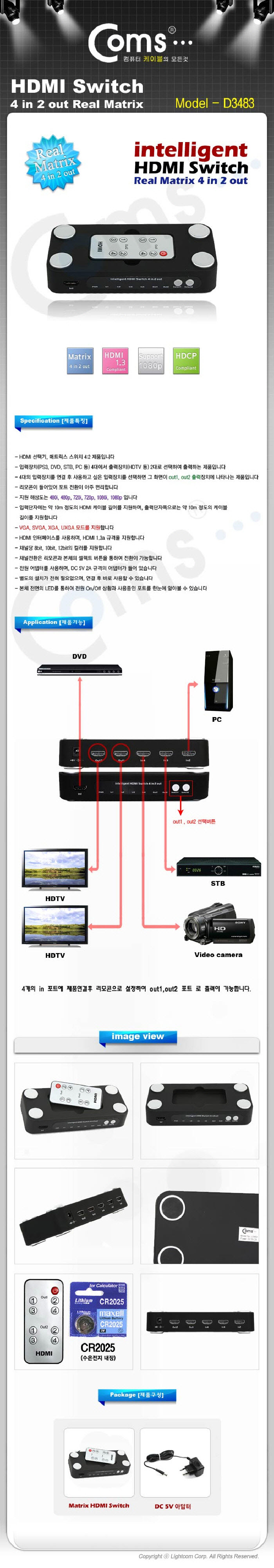 HDMI 선택기 (VE431)/ 4:2/메트릭스 스위치 D3483