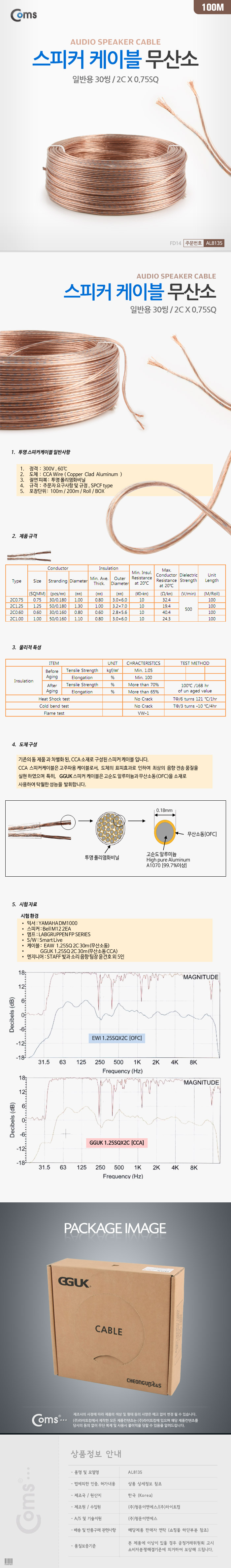 스피커 케이블, 일반용 30씽, 무산소 동선 100M AL8135