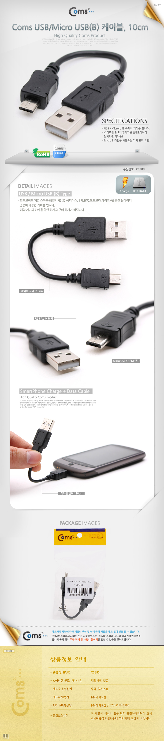 USB A(M)/Micro USB(B) 케이블, 10cm C3883