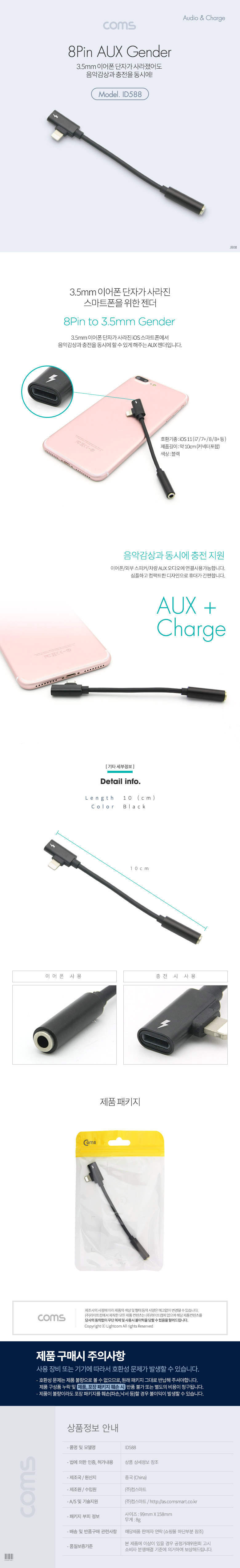 IOS 8핀 (8Pin) AUX 젠더(Y형) 10cm