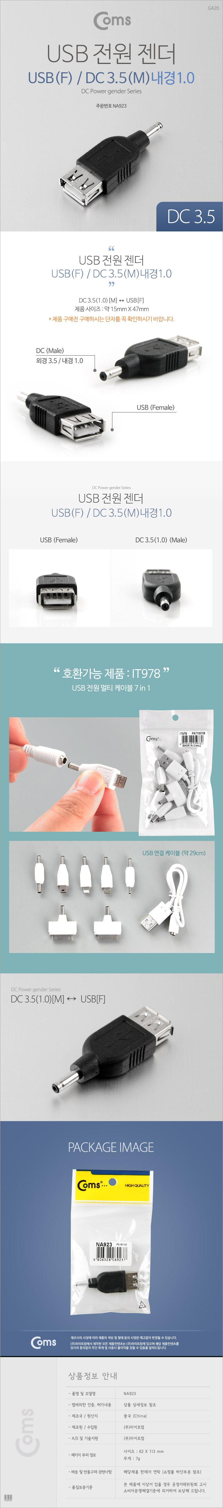 USB 전원 젠더 (DC 3.5), USB 2.0 Type A F/ M NA923
