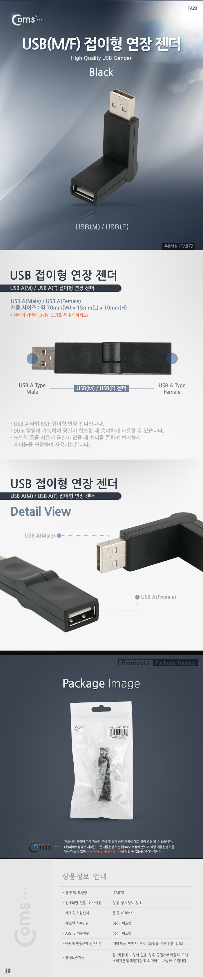 USB 젠더- USB 2.0 Type A 연장(M/F) 접이형 ITA872