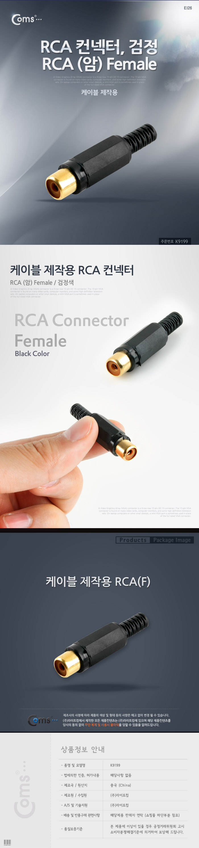 컨넥터 / 커넥터-RCA 암/검정 (RCA FEMALE) 제작용 K9199