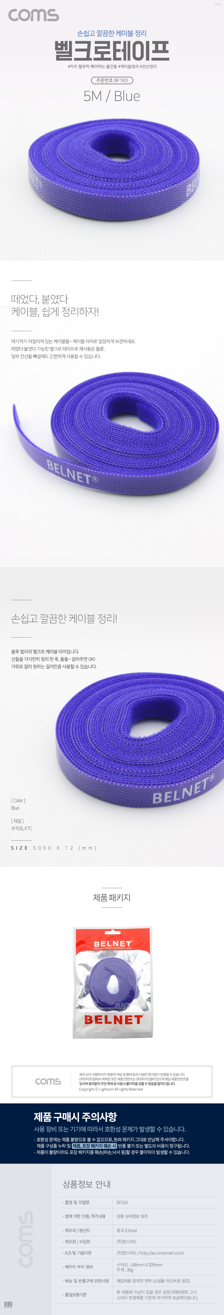 벨크로 타이 Blue 5M, 12mm, 벨크로 테이프, 블루