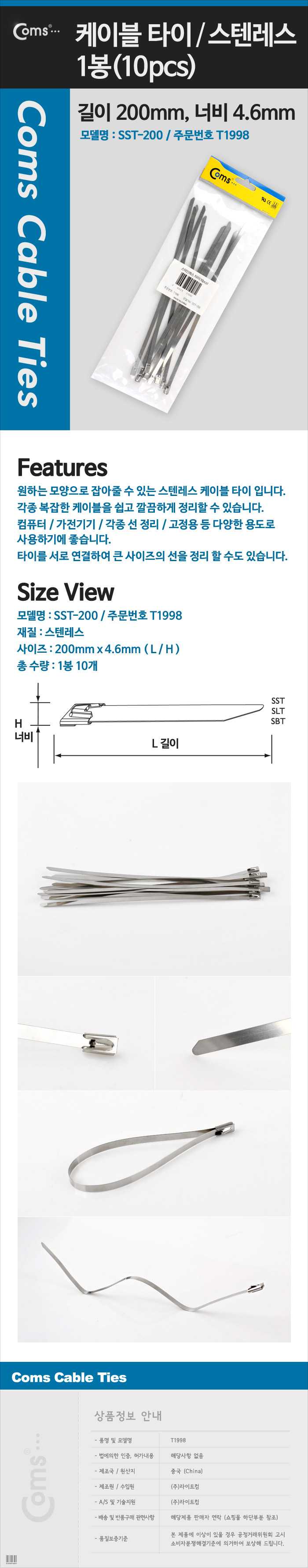 케이블 타이 / 스텐레스 1봉(10pcs) 200mm x 4.6mm SST-200