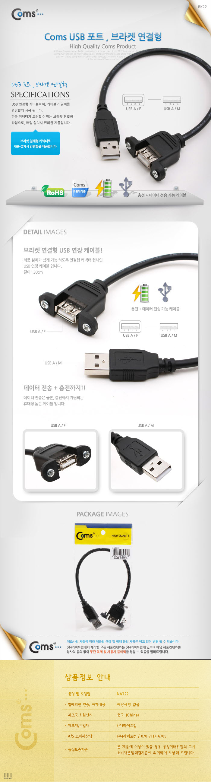 USB 포트, 30cm / 연장 브라켓연결형 NA722