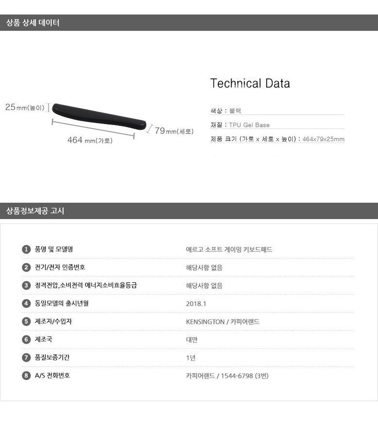 | 품명 및 모델명 | 켄싱턴 에르고 소프트 게이밍 키보드패드 K52798WW |