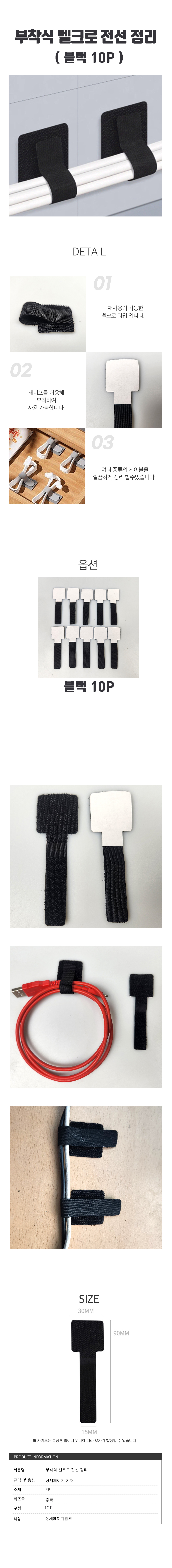 선정리 벨크로 타이 벽선정리 10P 블랙