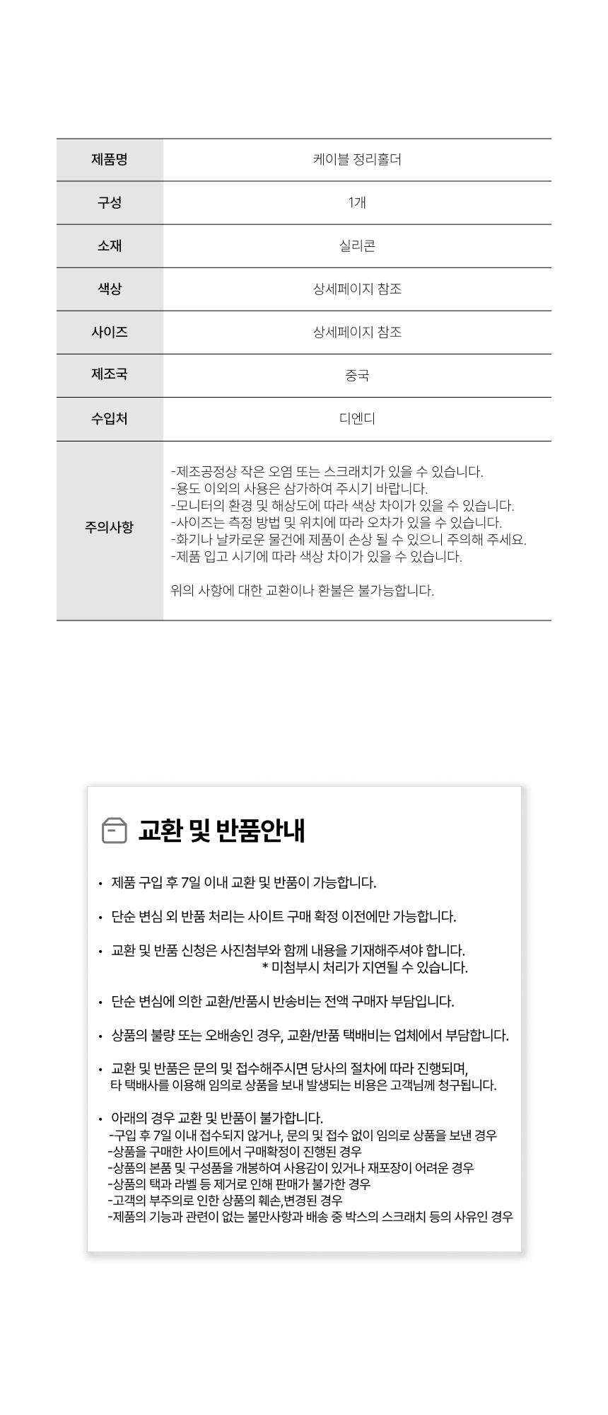 • 단순변심으로 인한 반품 시, 배송 완료 후 7일이 지나면 취소/반품 신청이 접수되지 않습니다.