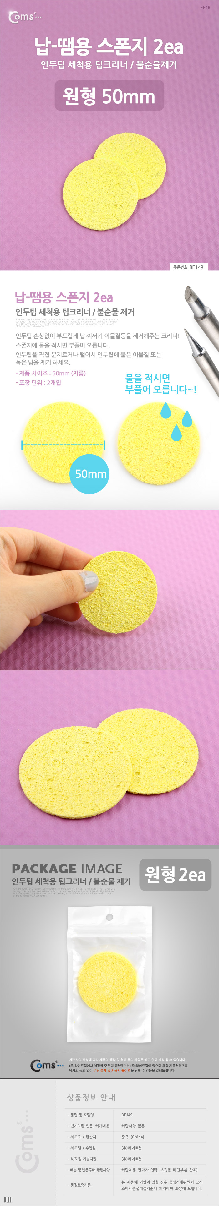 납-땜용 스폰지, 불순물제거, 2ea 인두 팁 청소 클리너 크리너 스펀지 BE149