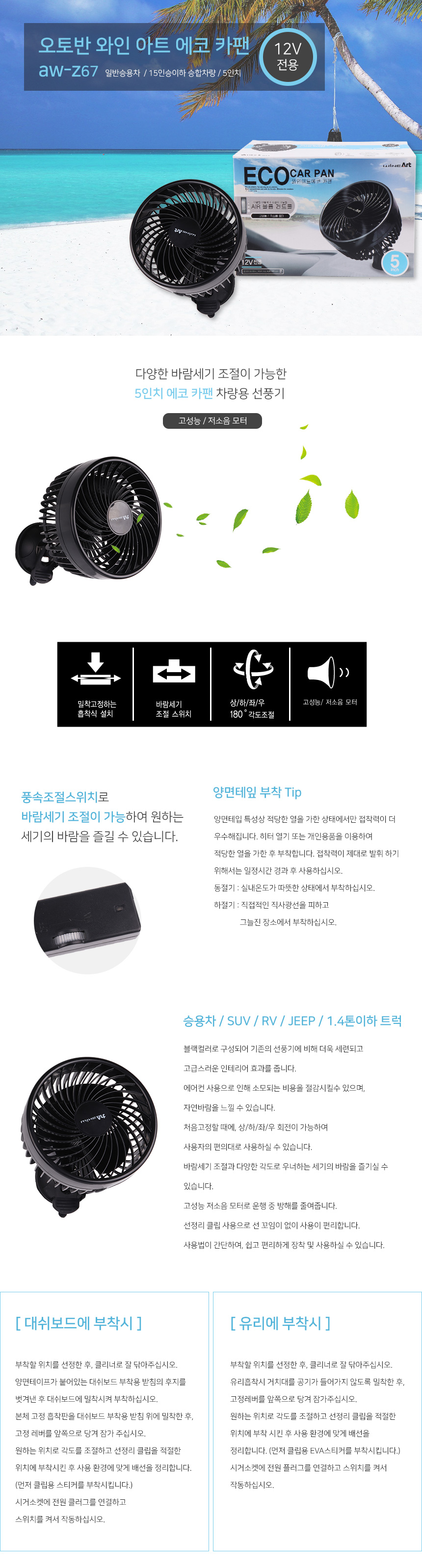 오토반 승용차용 선풍기 와인에코카팬 12v
