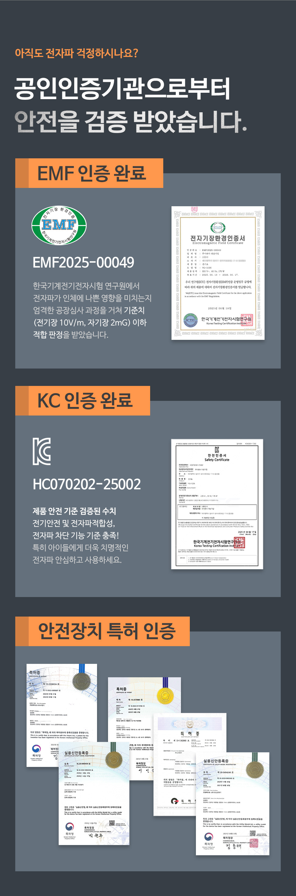 | KC 인증정보 | 인증유형:전기용품안전인증(KCC) / 인증번호:상세설명참조 |