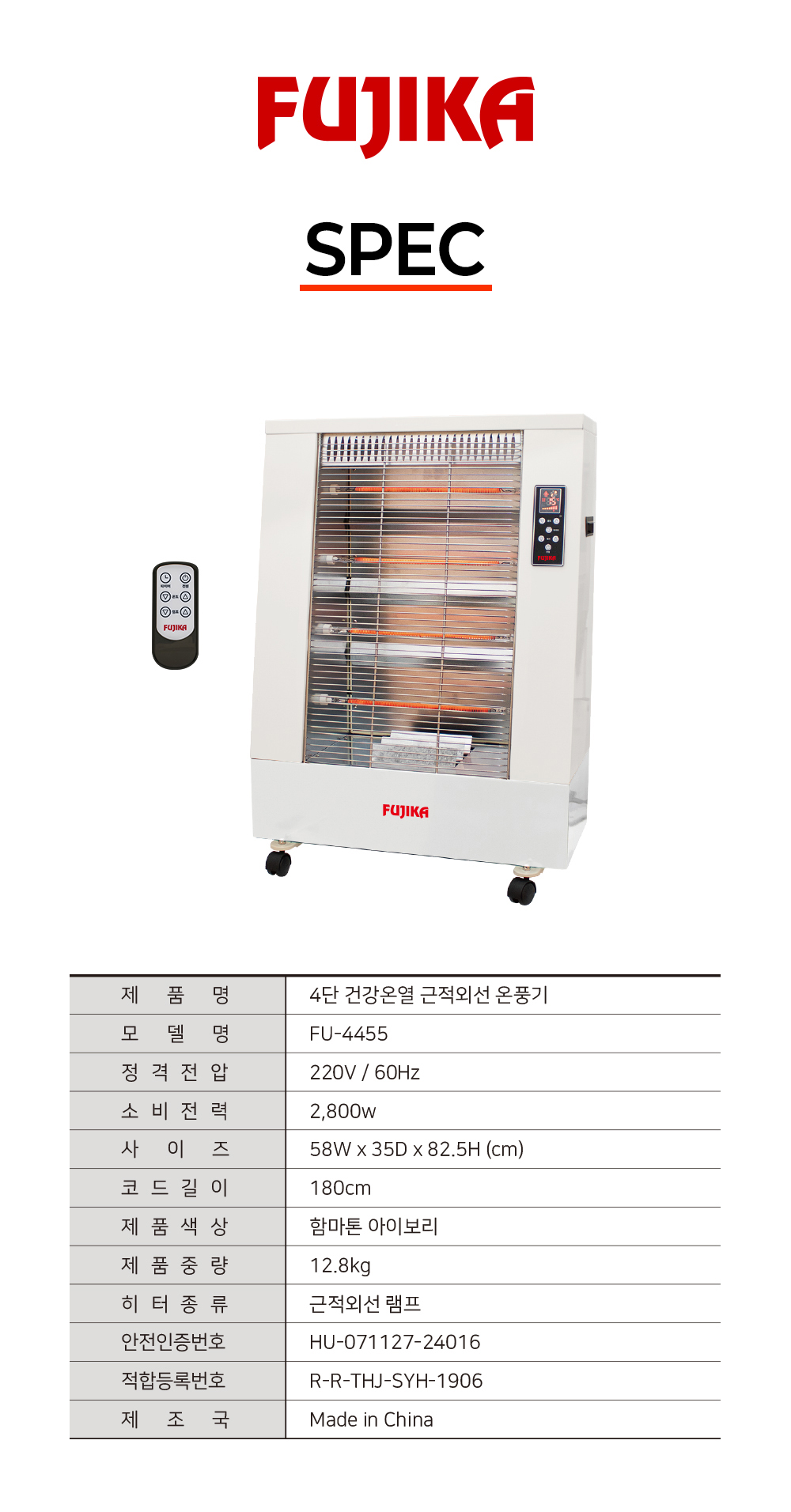 | 품명 및 모델명 | 품명:4단 건강온열 근적외선 온풍기 / 모델명:FU-4455 |