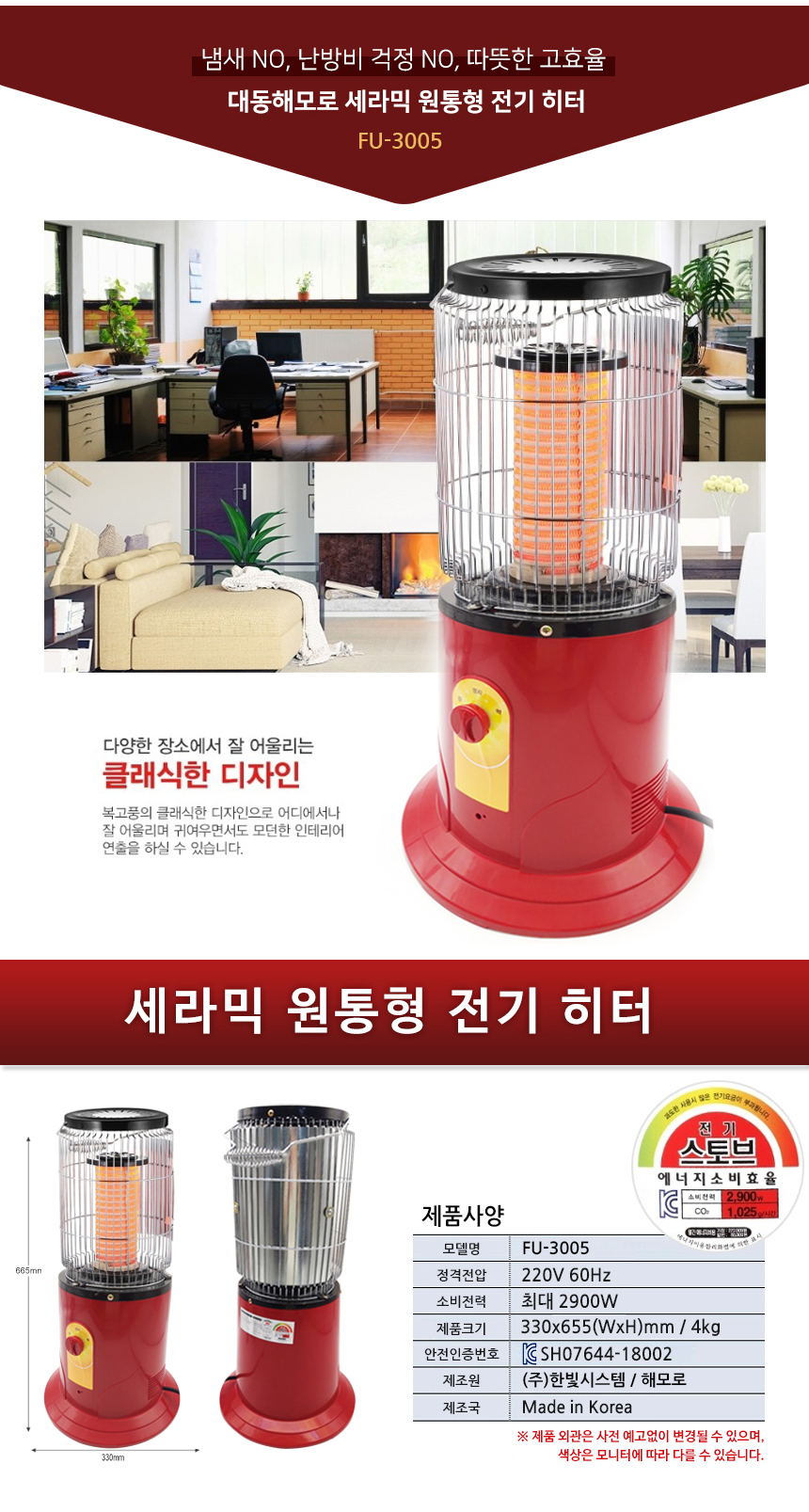 | 품명 및 모델명 | 품명:세라믹 원통형 전기히터 / 모델명:FU-305 |