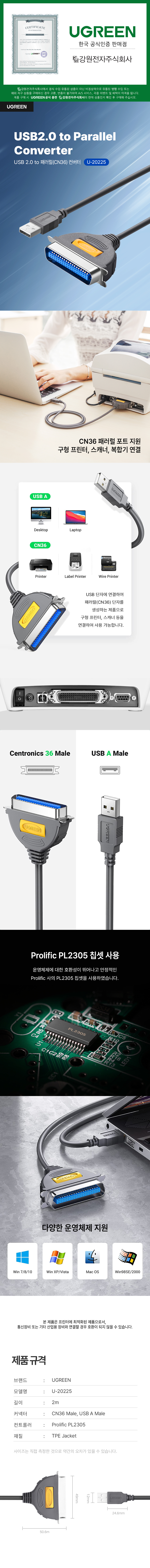 프린터 USB2.0 to 패러럴(CN36) 컨버터 2미터