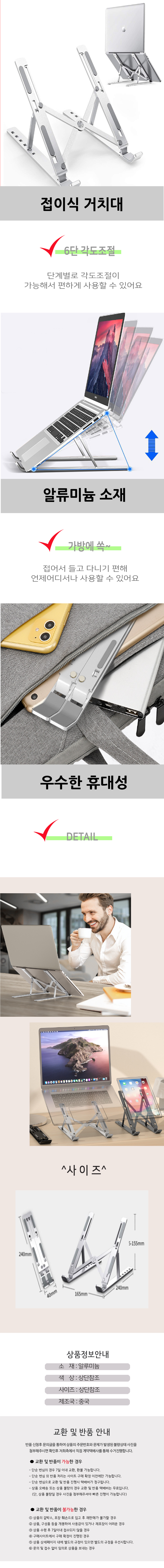 노트북거치대 6단 접이식 각도조절 휴대용 받침대