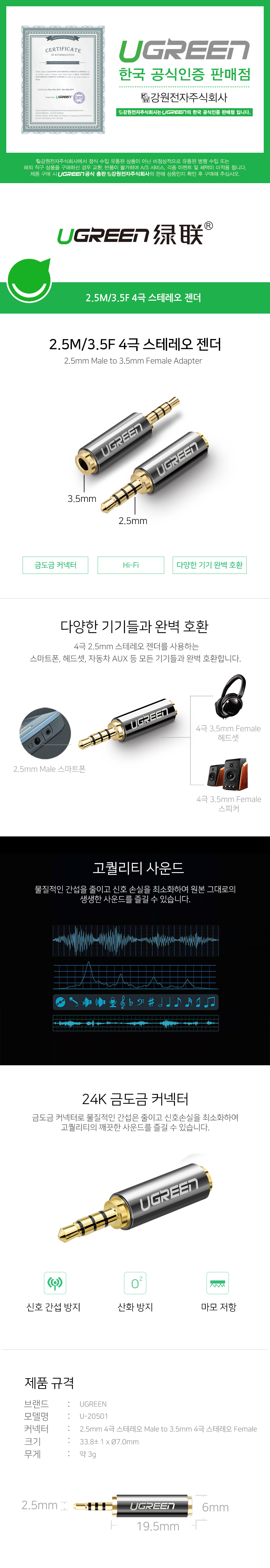 2.5mm 4극 스테레오 to 3.5mm 4극 스테레오 메탈 젠더