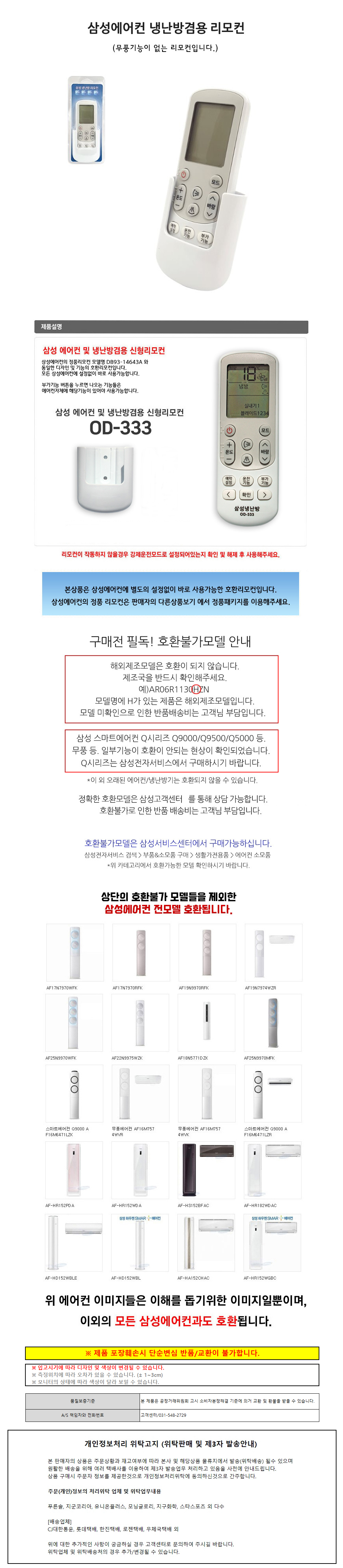 A/S 또는 소비자상담 전화번호 상세설명페이지 참고