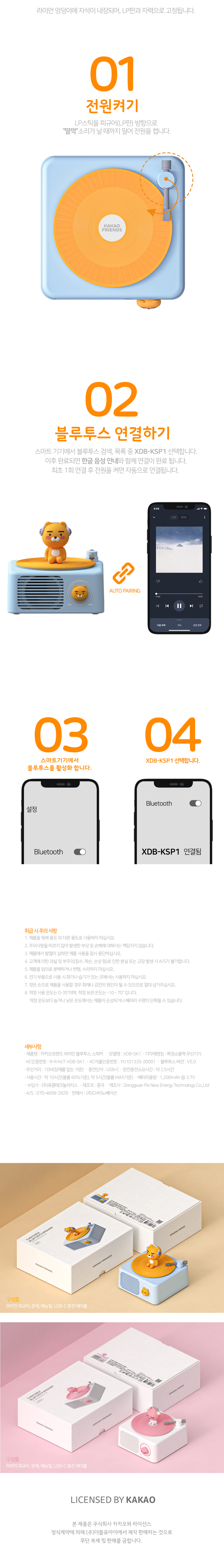 | 품명 및 모델명 | 카카오프렌즈 턴테이블 블루투스 스피커 |