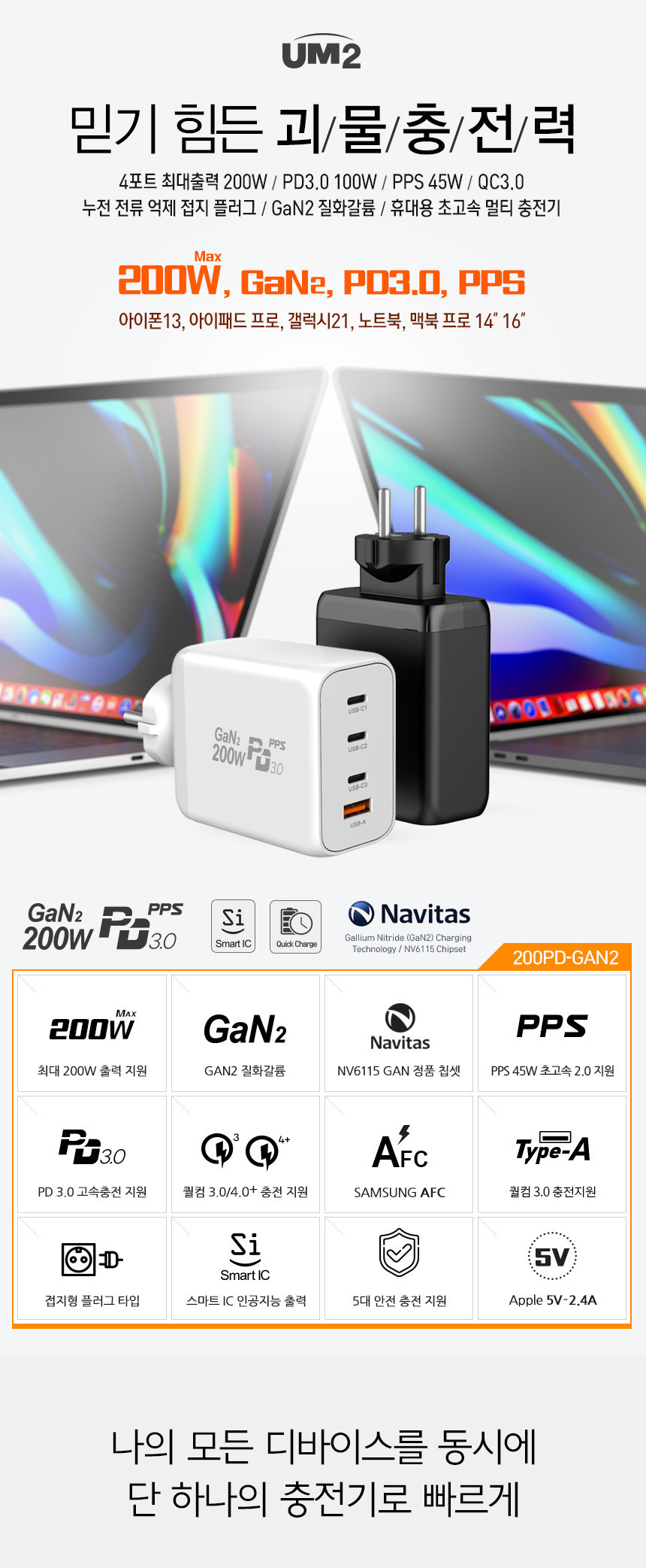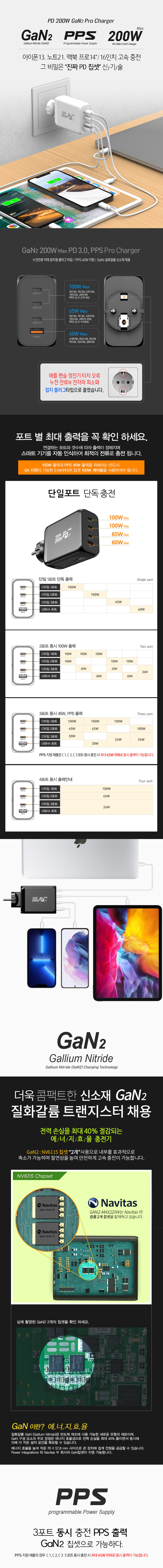 GaN2 핸드폰 PD 삼성 초고속 충전기 멀티포트 접지 충전기 200W 호환
