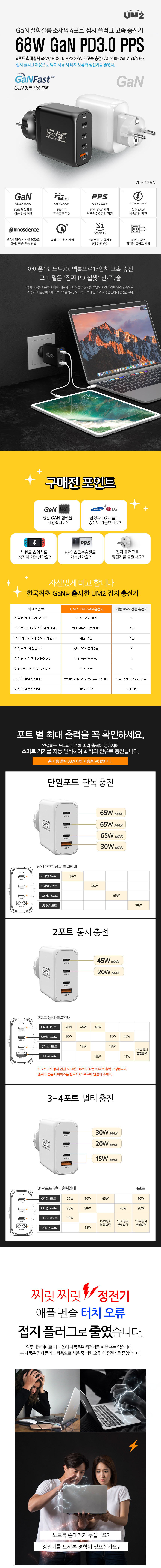 4포트 접지 충전기 노트북 PD C타입 초고속 멀티 충전기 USB 어댑터 68W