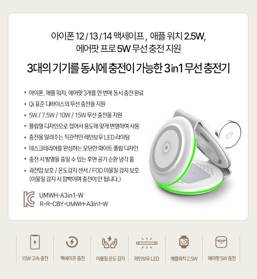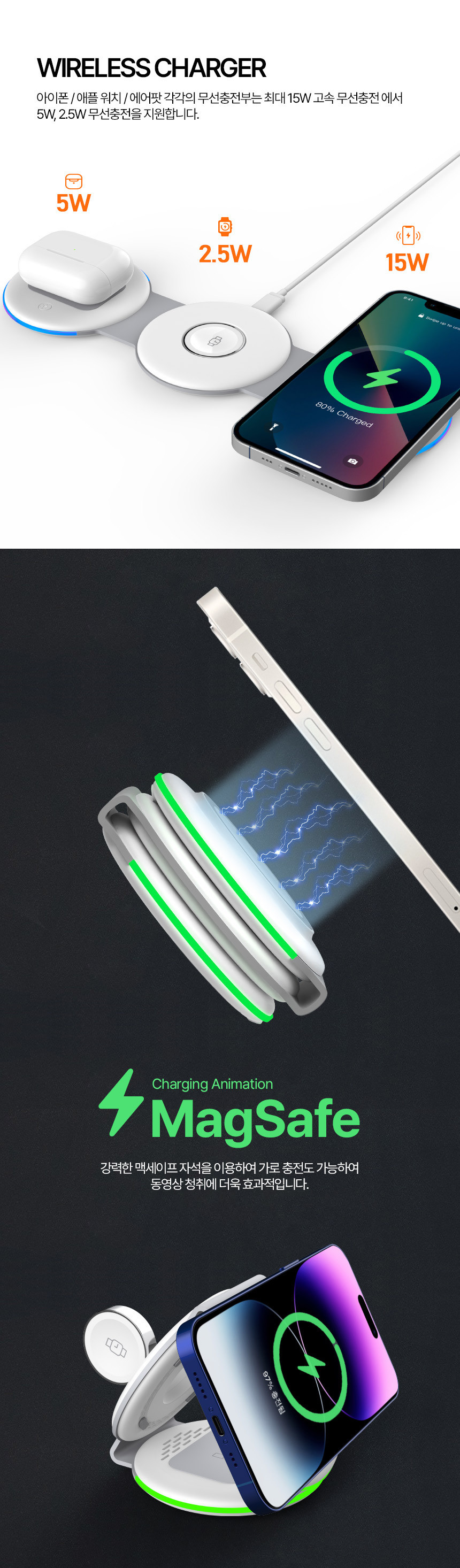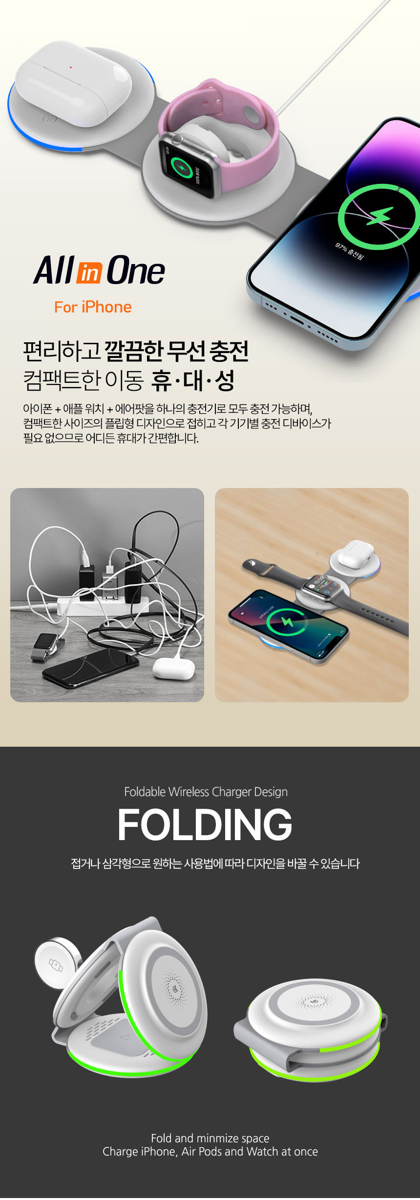 멀티 맥세이프 충전기 고속 접이식 아이폰 무선충전기 애플워치