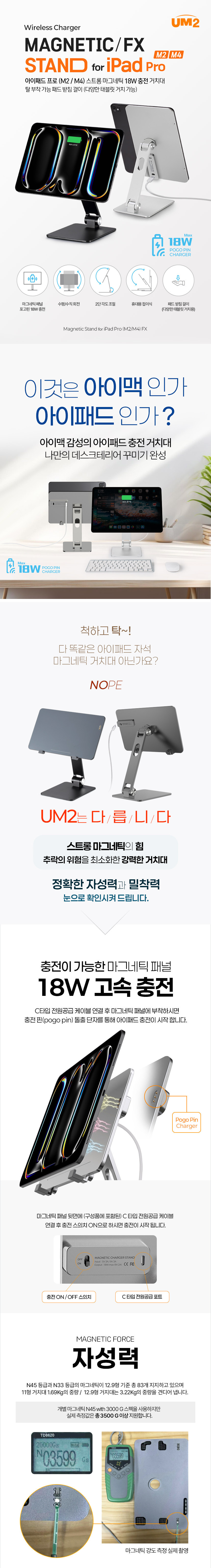 프로 아이패드 충전기 자석 C타입 스탠드 무선충전기 거치대 M4 11형 각도조절