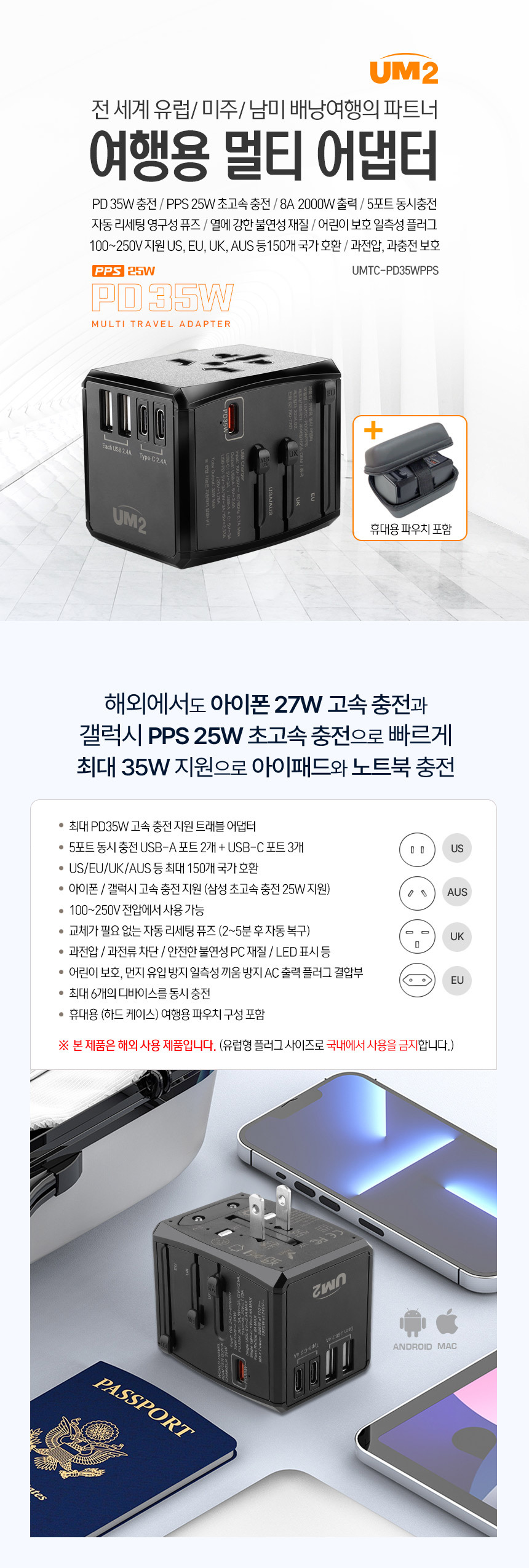 노트북 PD 여행용 충전기 멀티 C타입 초고속 충전기 어댑터 USB