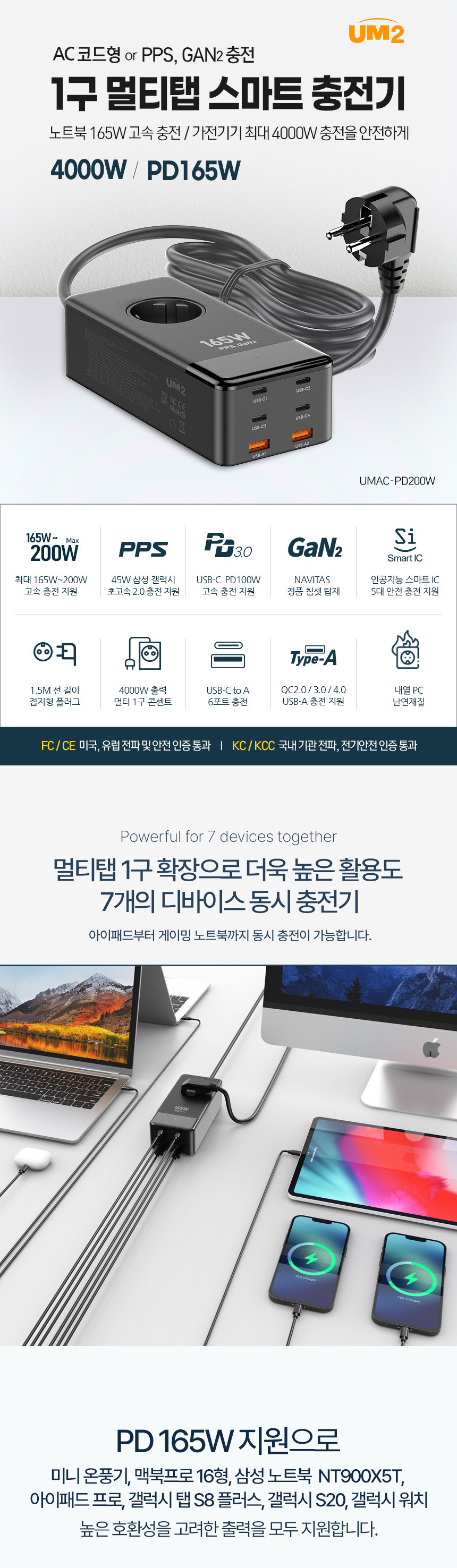 GaN2 200W 충전기 노트북 PD C타입 초고속 멀티충전기 USB 포트