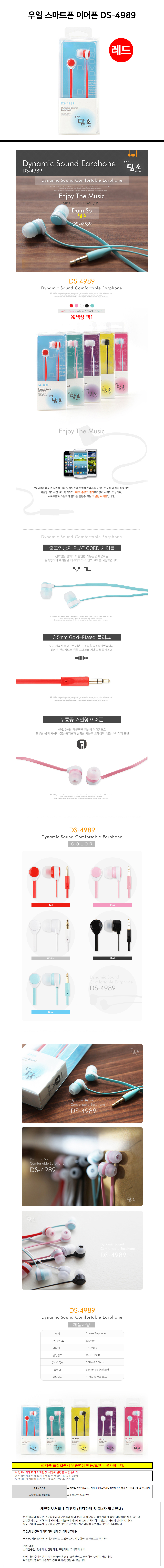 우솔 스마트폰 이어폰 DS-4989 (레드)