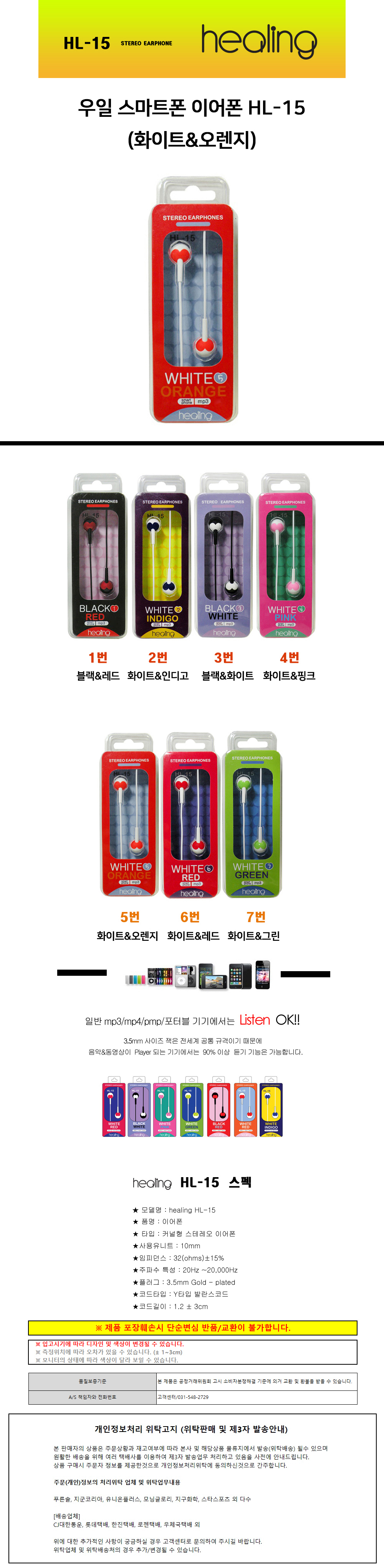 우솔 스마트폰 이어폰 HL-15 (화이트.오렌지)