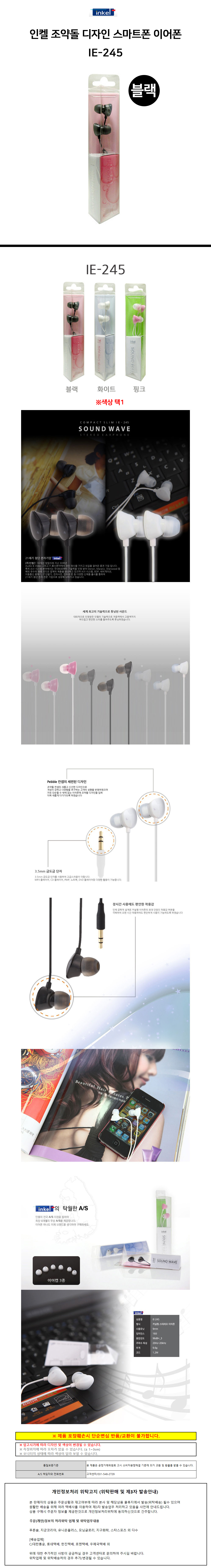 인켈 조약돌 디자인 스마트폰 이어폰 IE-245 (블랙)