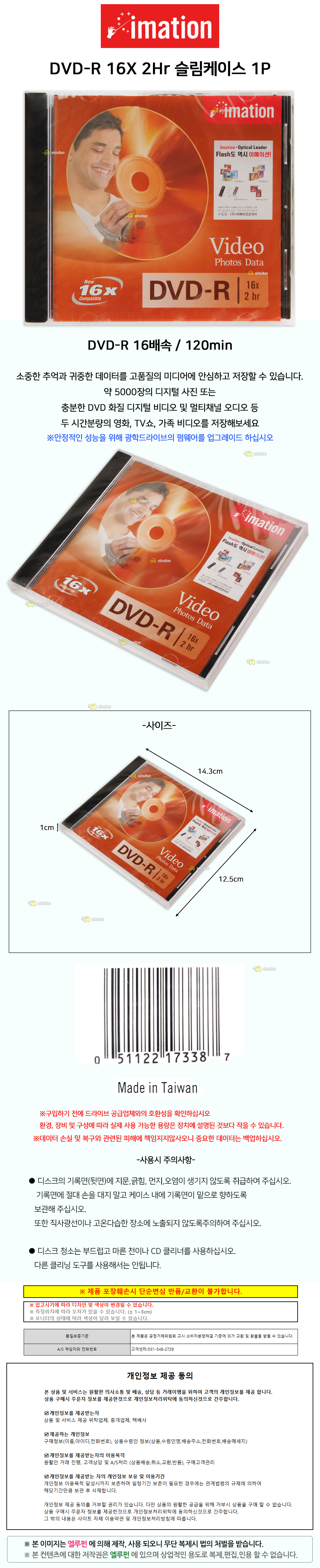 공dvdr DVD-R 16X 2Hr 슬림케이스 1P Video Photos Data