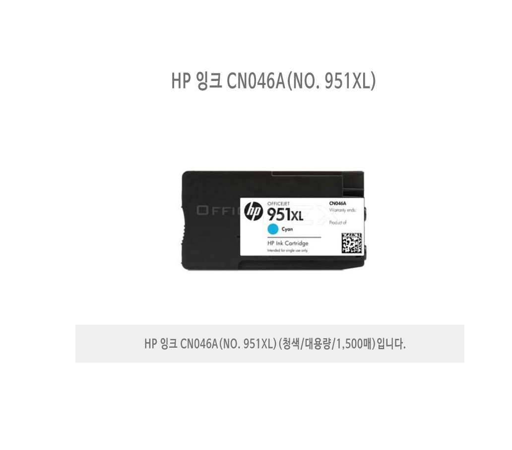 HP 잉크 CN046A(NO. 951XL)(청색 대용량 1 500매)
