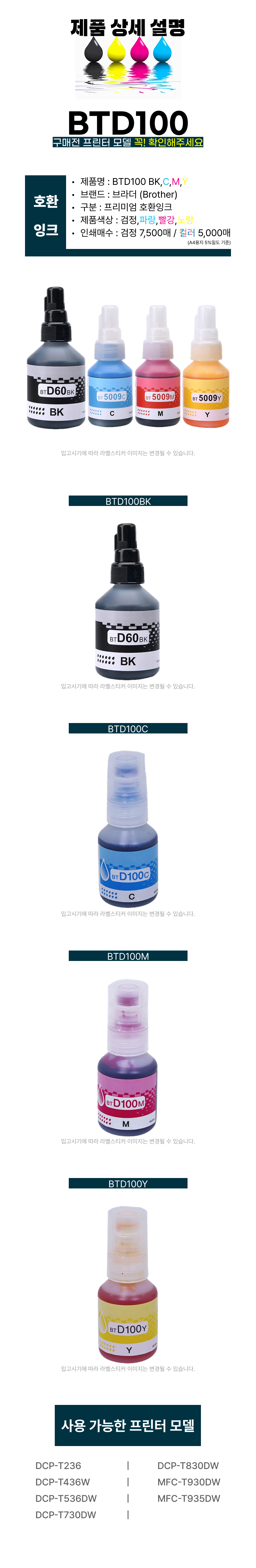 | 품명 및 모델명 | 품명:인쇄용 잉크 토너 / 모델명:BTD100 |