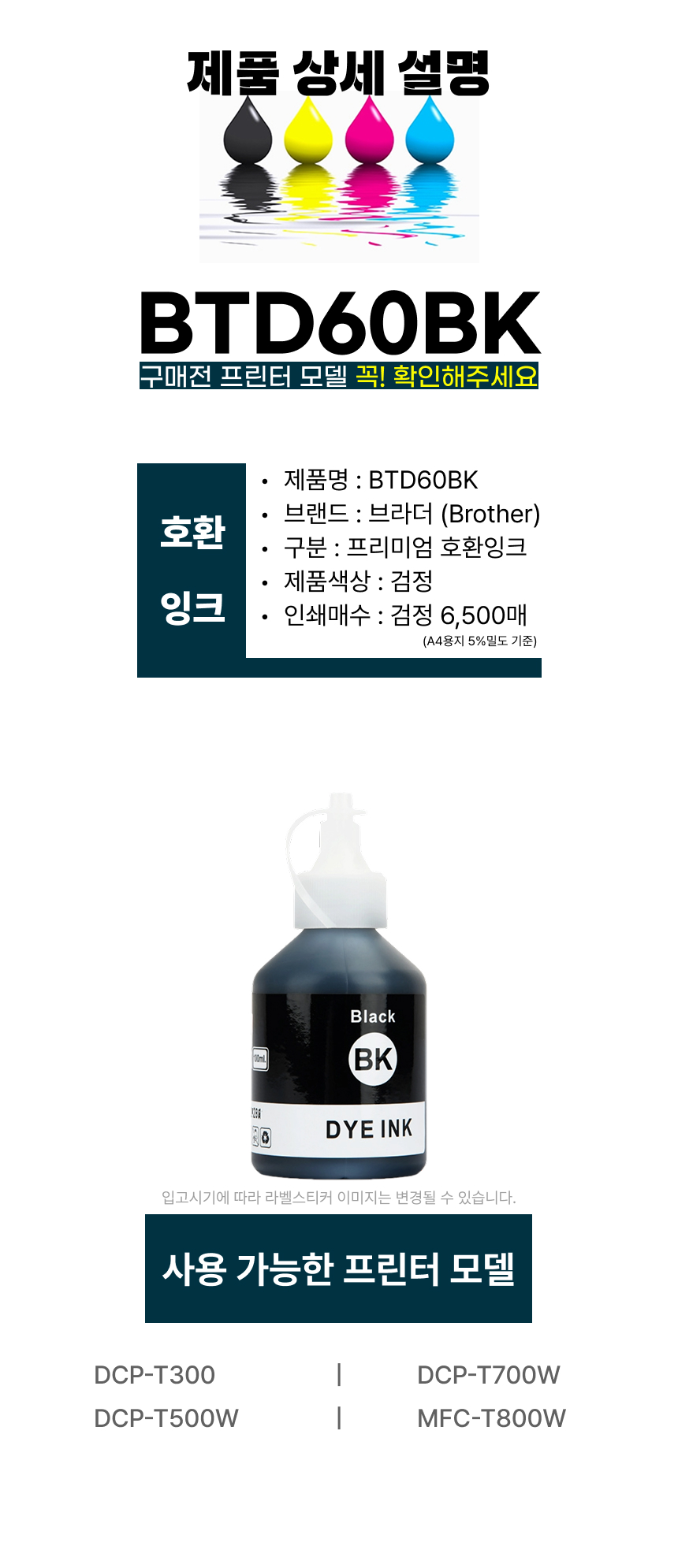 | 품명 및 모델명 | 품명:인쇄용 잉크 토너 / 모델명:BTD60BK |