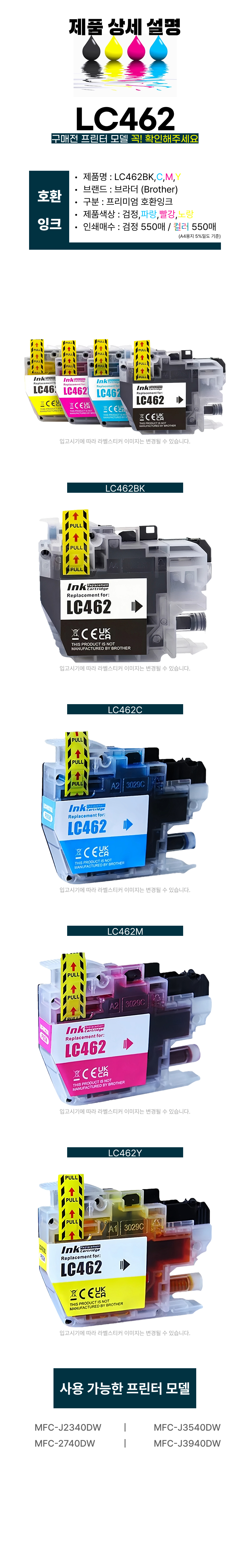 | 품명 및 모델명 | 품명:인쇄용 잉크 토너 / 모델명:LC462 |