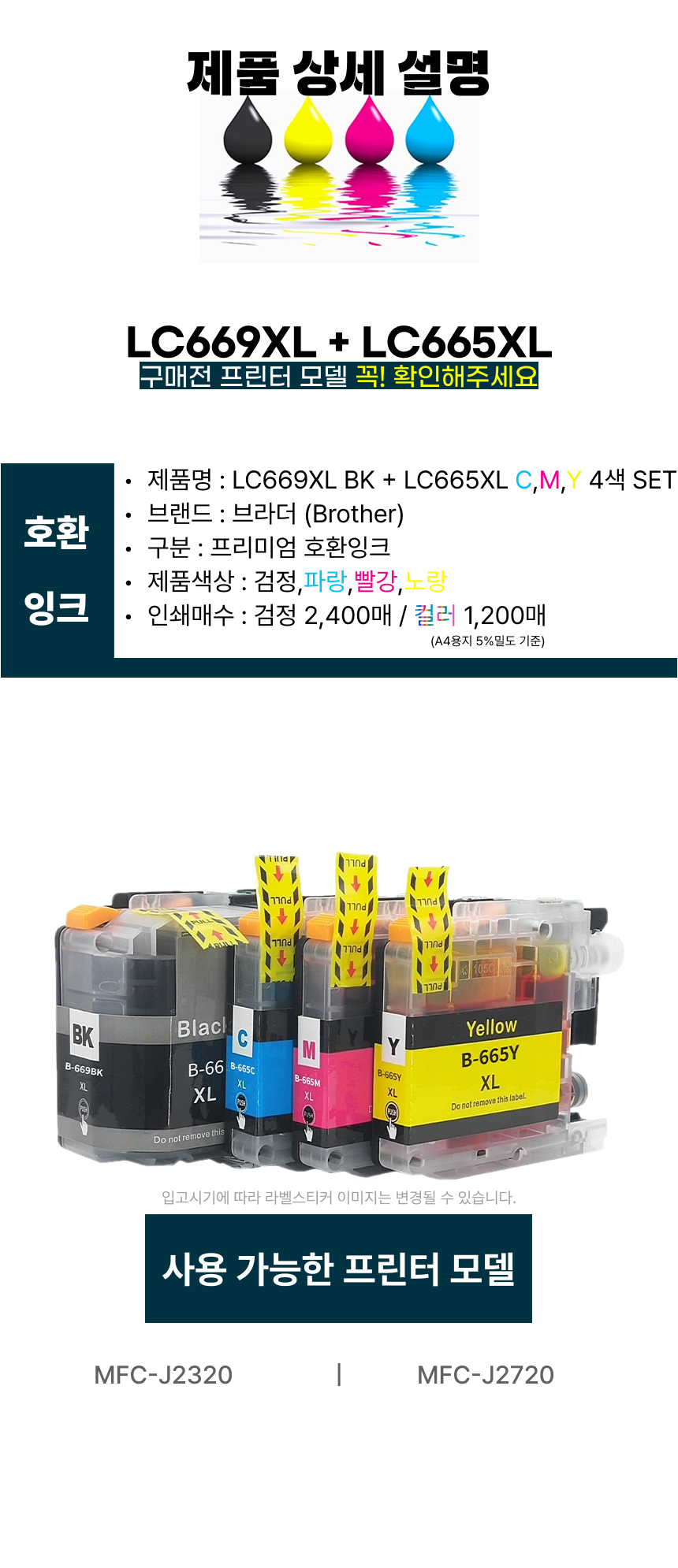 | 품명 및 모델명 | 품명:인쇄용 잉크 토너 / 모델명:LC669XL LC665XL Set |