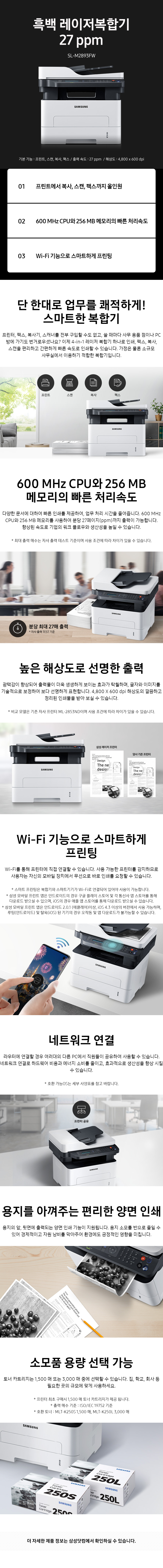 삼성전자 흑백 레이저 복합기 / SL-M2893FW