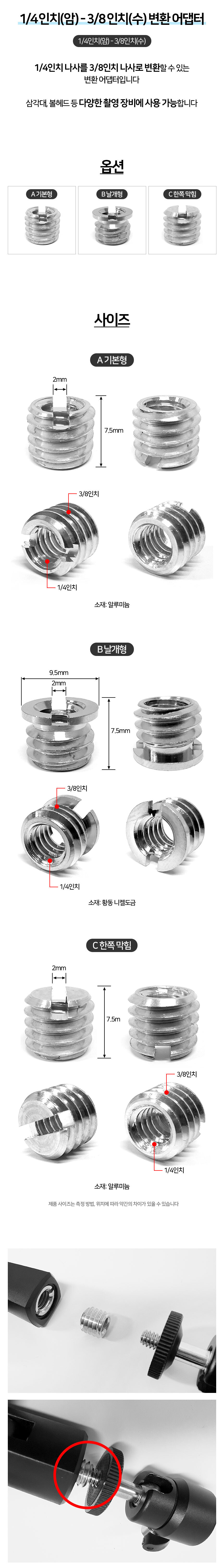 1/4인치 3/8인치 변환 어댑터 삼각대 나사 부쉬어댑터