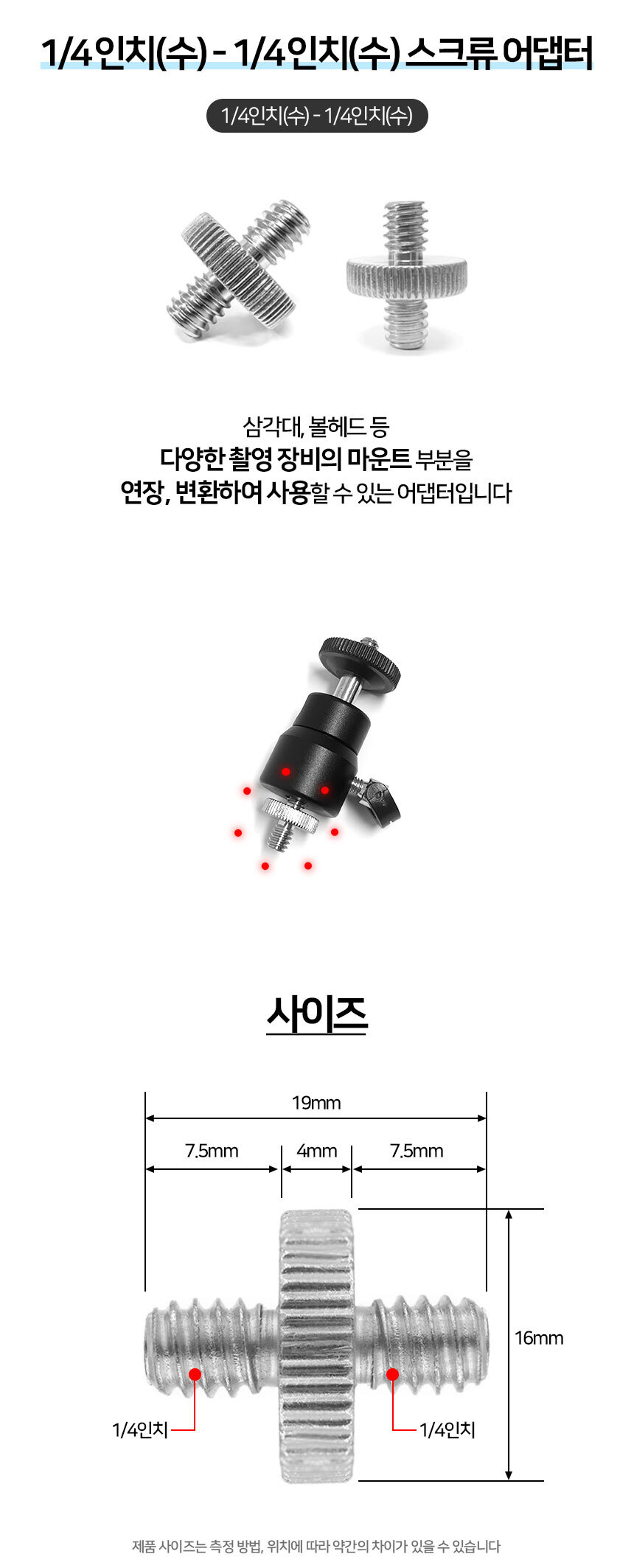 1/4인치 스크류 어댑터 나사 카메라 삼각대 악세사리