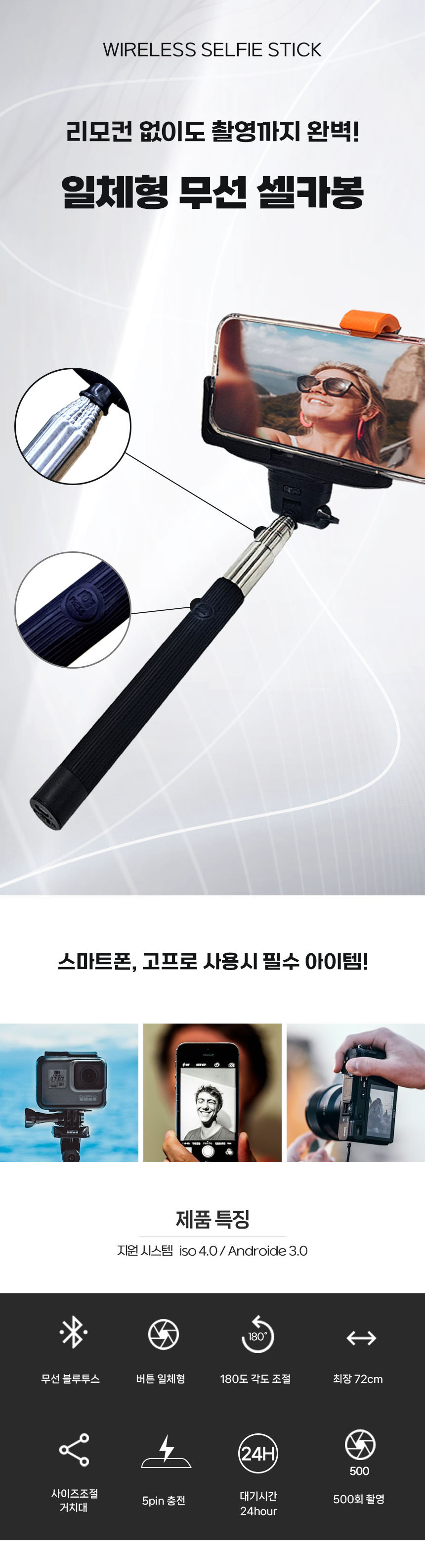 고프로 유튜브 일체형 무선 블루투스 셀카봉