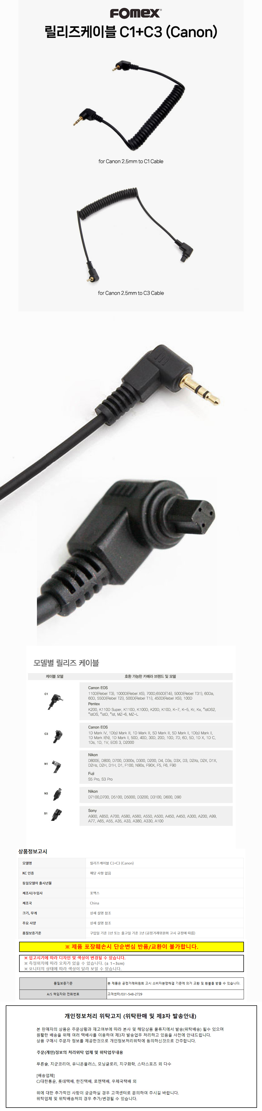 포멕스 사진조명 릴리즈 케이블 C1 C3 (캐논용)